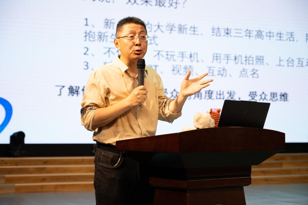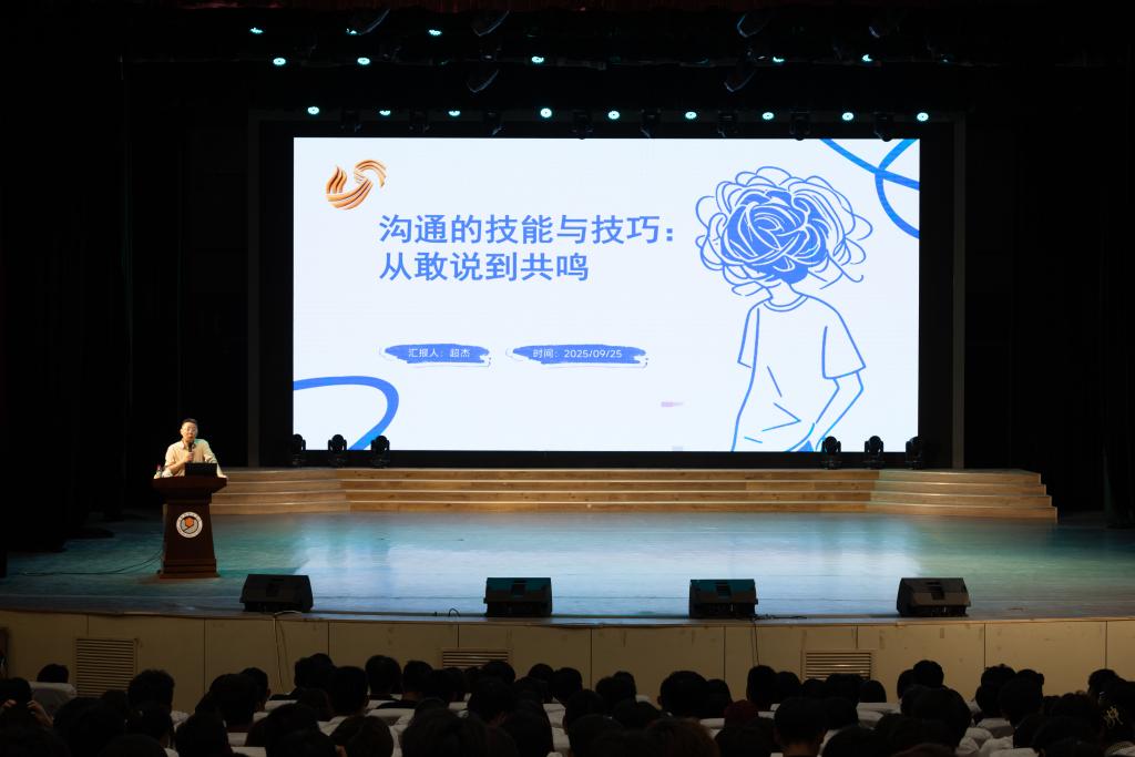 随后,谭超杰老师围绕“敢说、会说、能说”三大维度展开讲座。他从“重新定义沟通”破题,指出沟通不仅是说话的艺术,更是构建意义、达成共鸣的思维模式。针对常见的“不敢说”心理,谭老师结合聚光灯效应等理论,引导学生打破自我设限,鼓励“有瑕疵的表达优于完美的沉默”。在“会说”环节,他重点讲解了换位思考的方法,通过对比自我中心与他人中心的表达方式,强调构建“共享现实”的重要性。讲座还涉及沟通的边界把握、非语言信号运用、声音形象管理等实用技巧,并在“实战”部分模拟了见家长、求职面试、实习汇报等场景,为学生提供了具体可操作的通关指南。