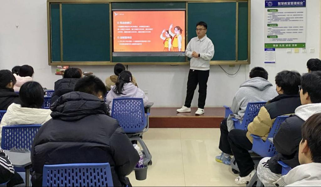 学院依托“课前十分钟”项目,广泛开展宪法主题演讲。学生结合生活案例与社会热点,分享对宪法的理解与感悟,在生动表达与思想碰撞中,让宪法知识真正入脑入心。