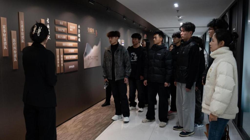 在大学生法律协会牵头组织下,学院学生走进专业律所。通过观摩法律实务流程和聆听行业前辈分享,有效实现宪法精神与法律实践的深度融合,拓宽了学生们法治实践的渠道与维度。
