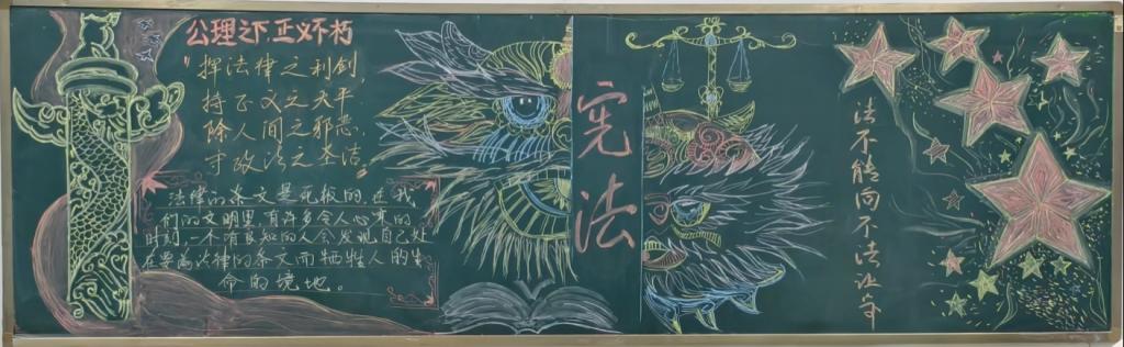 宪法宣传周期间,学院组织开展宪法主题黑板报创作。学生们以图文并茂的形式,生动展示了宪法知识。营造了“人人参与、共学宪法”的浓厚氛围,将法治精神融入校园文化生活。