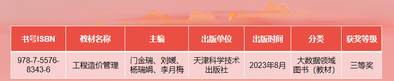暑假期间,学院积极响应学校号召,教学建设与改革工作扎实推进,在教材与教学成果奖方面实现新突破。8月20日,全国高校人工智能与大数据创新联盟、华算人工智能研究院公布了2025年全国高校人工智能+数字经济优秀教材评选结果,我院门金瑞老师主编的《工程造价管理》教材,荣获大数据领域图书(教材)三等奖。